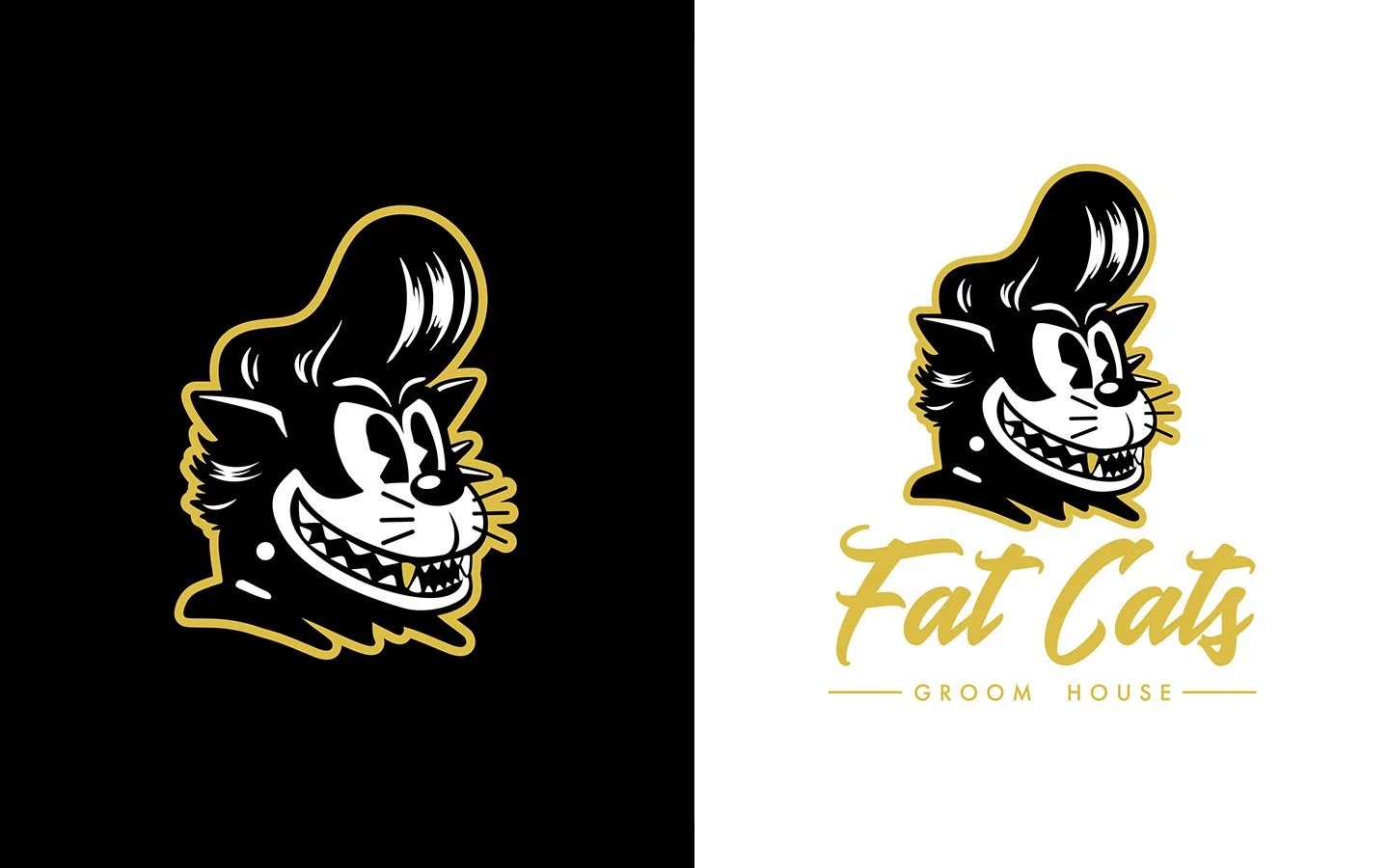 Logo and branding for Fat Cats Groom House, an award-winning classic barbershop based in St. Augustine, Florida. The identity was designed to reflect the shop’s timeless and quirky style while giving the brand a distinctive and recognizable presence.
