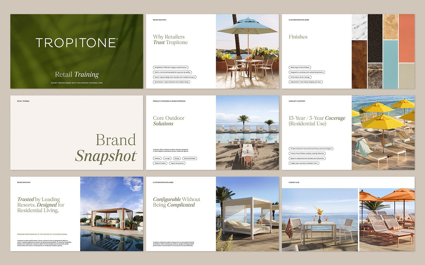 Tropitone is a premium outdoor furniture company started in 1954. In my role as Senior Graphic Designer for Brown Jordan Inc., I led and directed the rebranding of Tropitone, shaping a cohesive visual identity across brand systems, collateral, and digital design to establish a clear and consistent foundation for all brand communications. Below are samples of work created to build Tropitone’s reputation as a world-class leader in outdoor furniture.